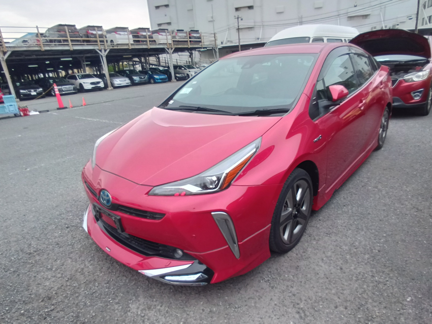 Stunning 2020 Toyota Prius ZVW51 A Touring Selection in Emotional Red. This vehicle is in auction grade 4 condition with a pristine ‘A’ grade interior. It features a full Modellista Aero kit and muffler, giving it a sporty, aggressive look. Equipped with a large 9-inch Toyota genuine navigation system, safety sense technology, and low mileage of just 51,079 km. A perfect combination of hybrid efficiency and unique style.