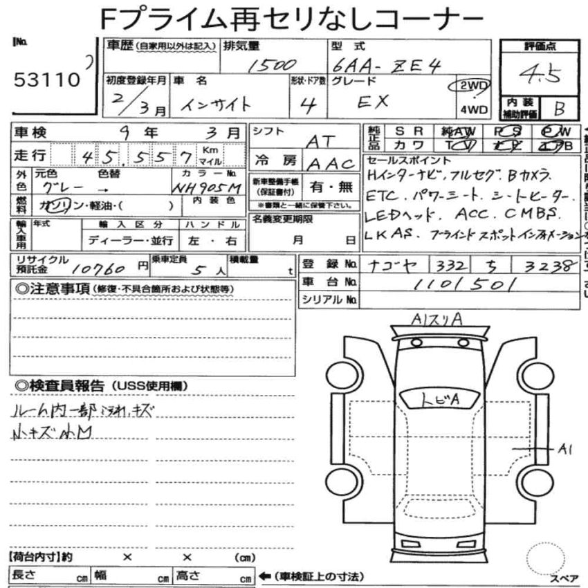 Experience the perfect balance of efficiency and sophistication with this 2020 Honda Insight EX Hybrid. Rated a high Auction Grade 4.5, this vehicle is in superb condition with just 45,557 km on the clock. It comes fully loaded with premium features including heated power seats, a comprehensive Honda Sensing safety suite (ACC, LKAS, CMBS), Blind Spot Information, and a high-quality Internavi system. The sleek Gray exterior combined with a clean B-grade interior makes this a top choice for a modern, reliable, and eco-friendly daily driver.