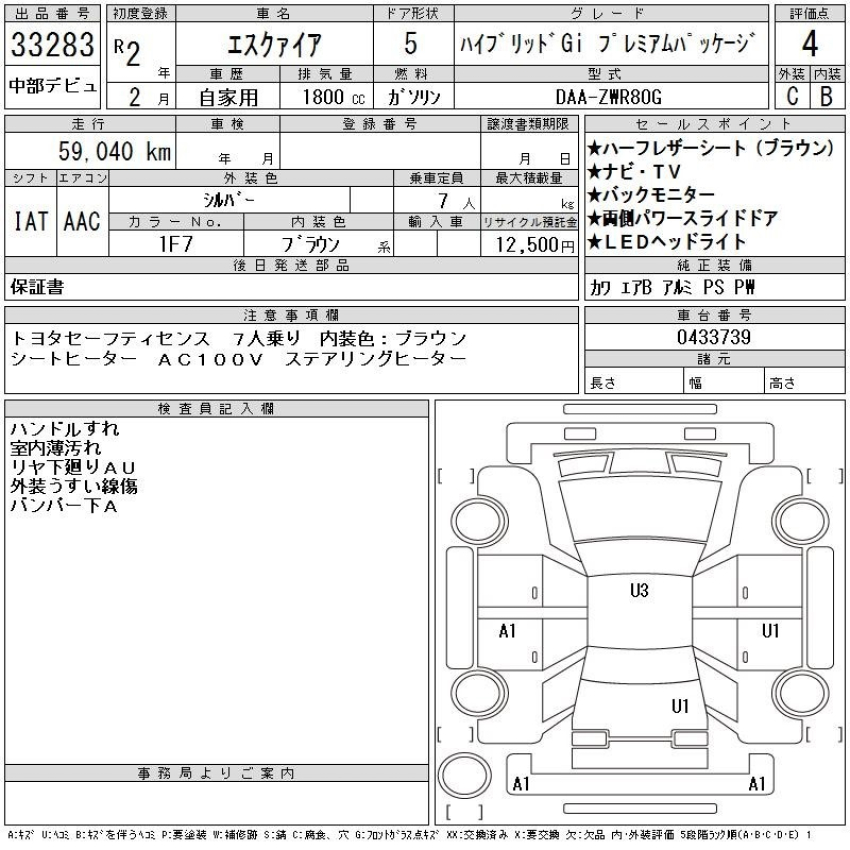Discover luxury and efficiency with this 2020 Toyota Esquire Hybrid Gi Premium Package. Rated a solid Auction Grade 4 with a clean B-grade interior, this minivan features a stunning Brown Half-Leather interior that sets it apart. Equipped with Toyota’s reliable 1.8L Hybrid system, it offers excellent fuel economy for city and highway driving. Key features include Dual Power Slide Doors for easy access, Heated Seats and Steering Wheel for comfort, Toyota Safety Sense for peace of mind, and a high-quality Navigation system with Back Monitor. With 59,040 km on the clock, this 7-seater is ready for your family’s next adventure.