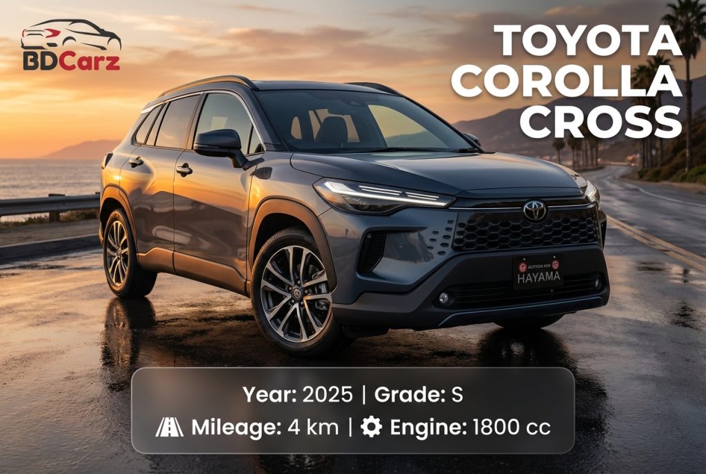 Discover this pristine 2025 Toyota Corolla Cross Hybrid Z, presenting in showroom condition with a rare Auction Grade S and Interior/Exterior Grade A. With only 4 km on the clock, this SUV is virtually brand new. It comes fully equipped with premium features including a Panoramic Sunroof, 360-degree Panoramic View Monitor, Power Back Door, and luxurious Half-Leather Heated Seats. Finished in a sophisticated Gray (Color Code 1M2), this efficient 1.8L Hybrid offers the perfect combination of modern technology, safety, and style.