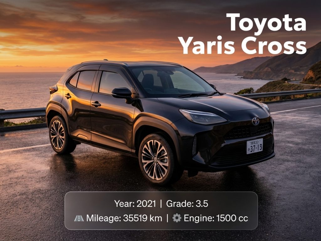 Discover the perfect blend of efficiency and utility with this 2021 Toyota Yaris Cross Hybrid Z. Finished in sleek Black, this SUV is packed with premium features including a Panoramic View Monitor, Power Back Door, Front Seat Heaters, and a comprehensive safety suite (LTA, PCS, BSM, etc.). With just 35,519 km and an auction grade of 3.5, it’s ready for its next adventure.